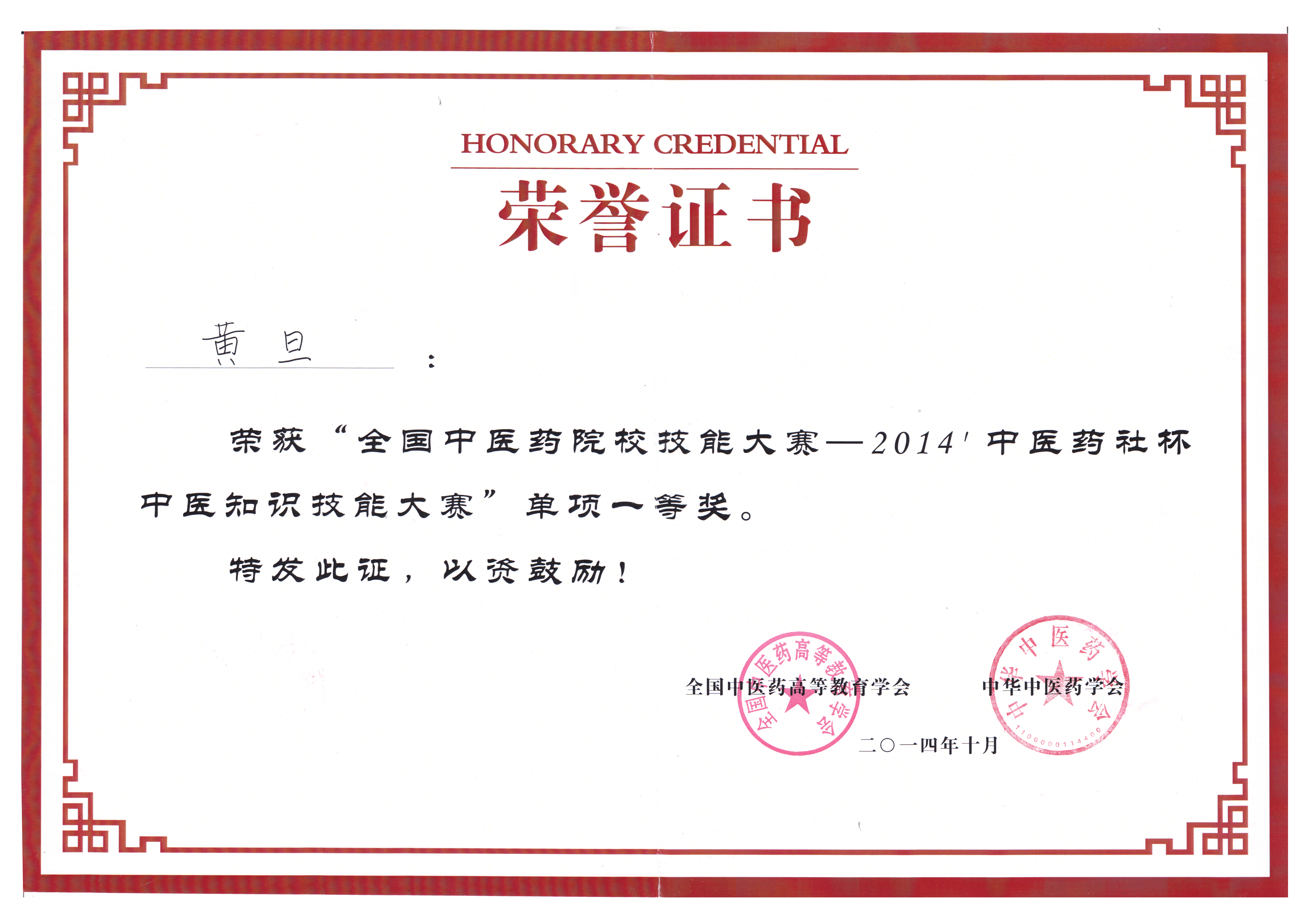 全国中医药院校技能大赛-2014中医药社杯中医知识技能大赛一等奖