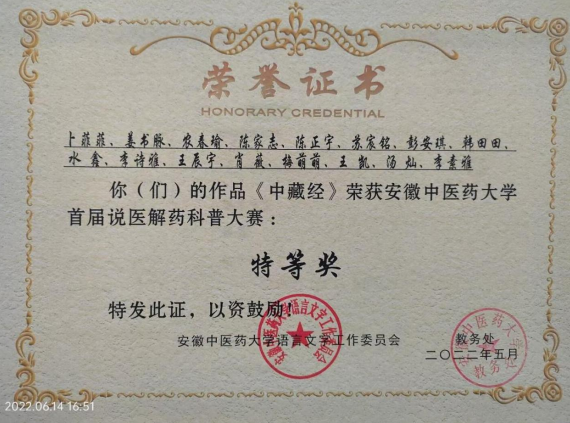 安徽中医药大学首届说医解药科普大赛特等奖:《中藏经》