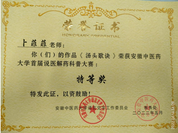 安徽中医药大学首届说医解药科普大赛特等奖:《汤头歌诀》