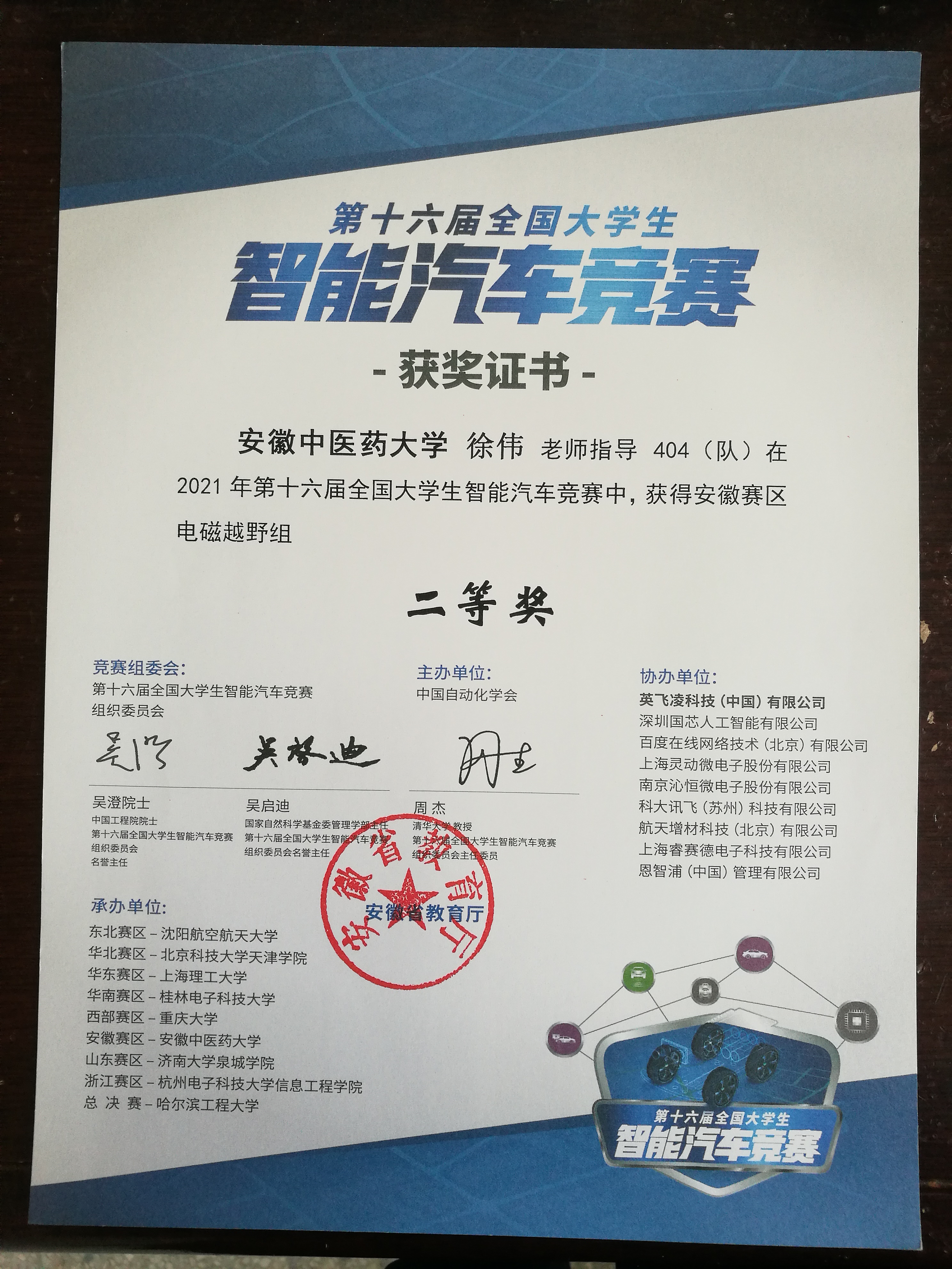 第十六届全国大学生智能汽车竞赛安徽赛区二等奖