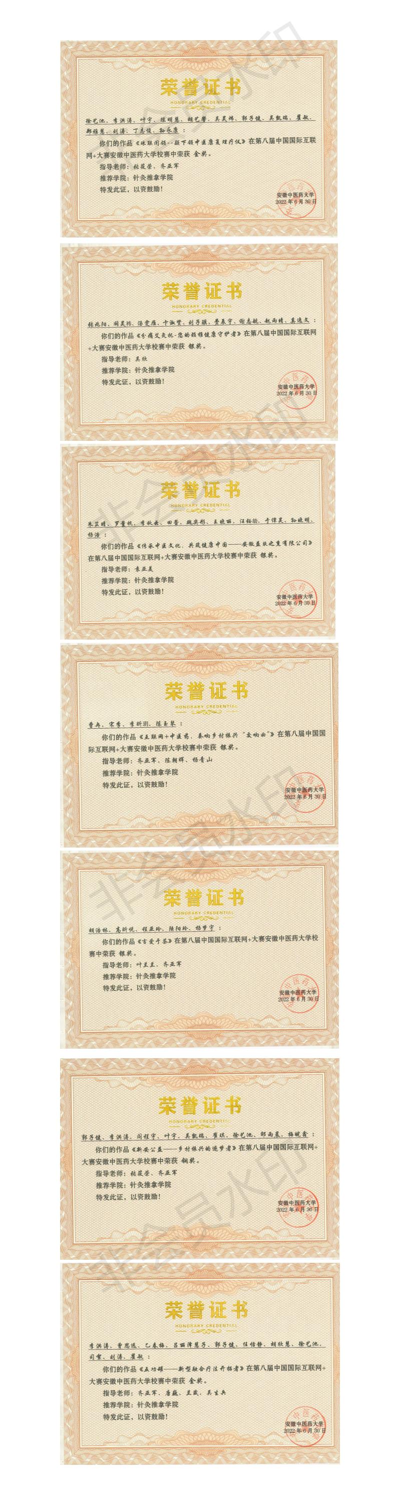 2022年针灸推拿学院:第八届互联网+校赛证书(齐亚军指导)