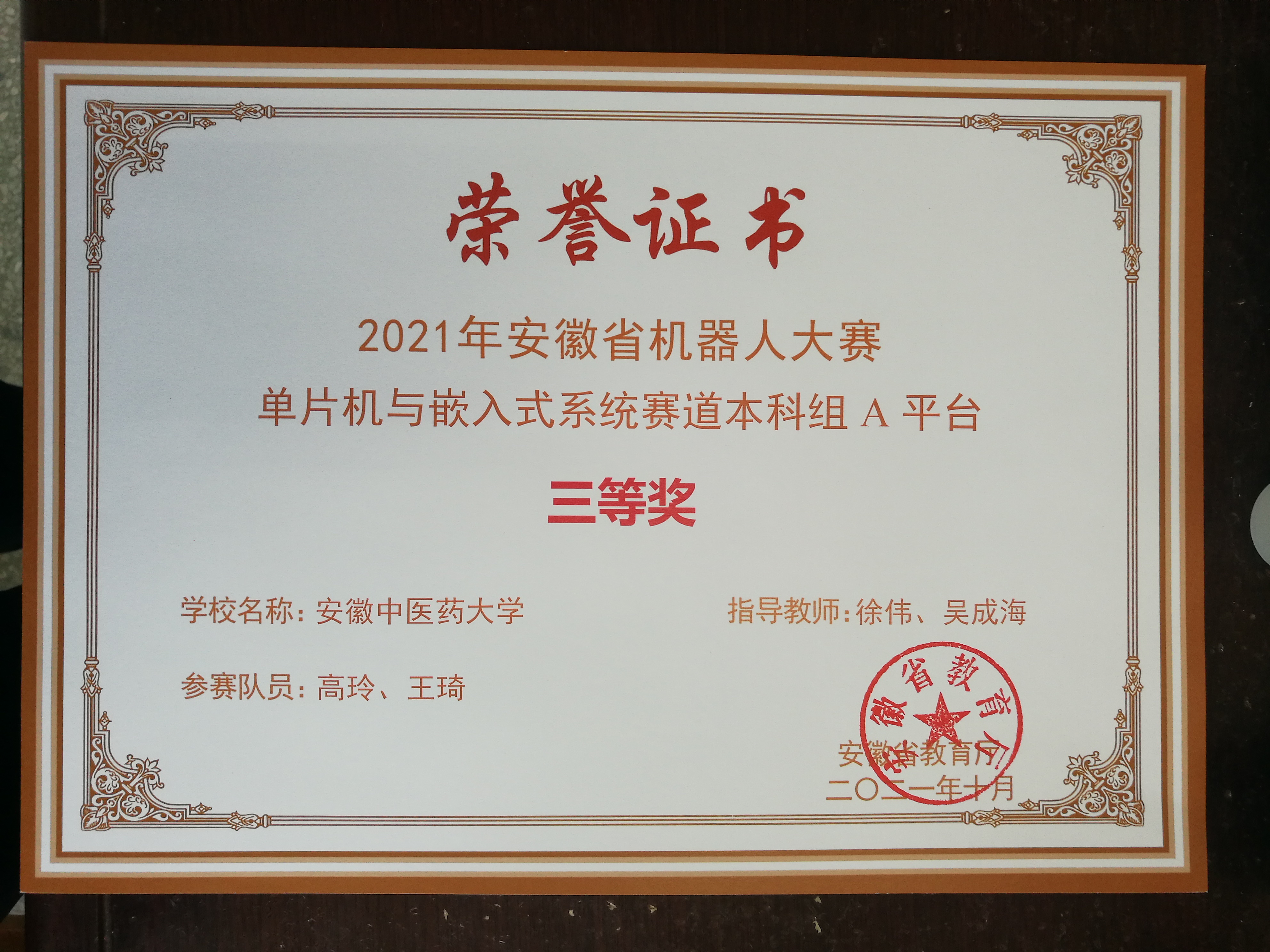 2021年安徽省机器人大赛单片机与嵌入式系统赛道本科组A平台三等奖(徐伟指导)
