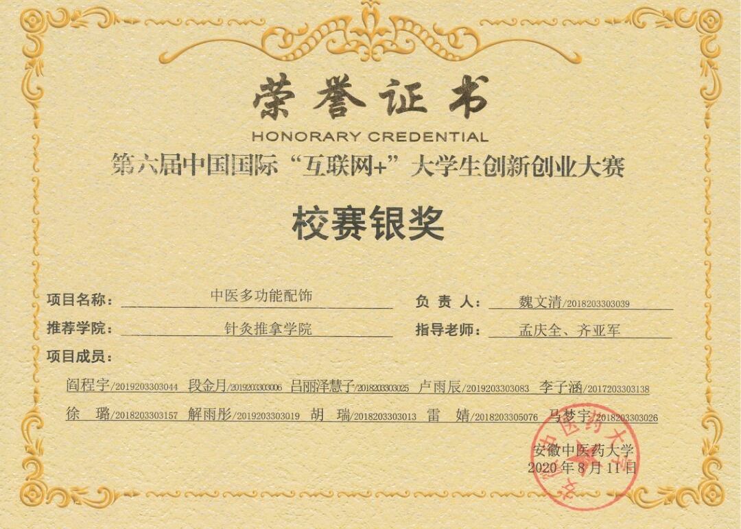2020校第六届互联网+银奖--中医多功能配饰(齐亚军指导)