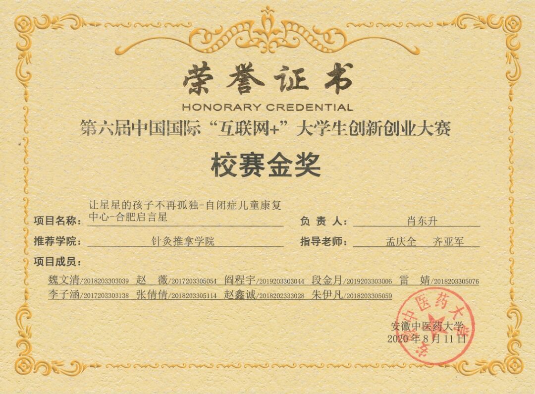 2020校第六届互联网+金奖--星星孩子不在孤独(齐亚军指导)