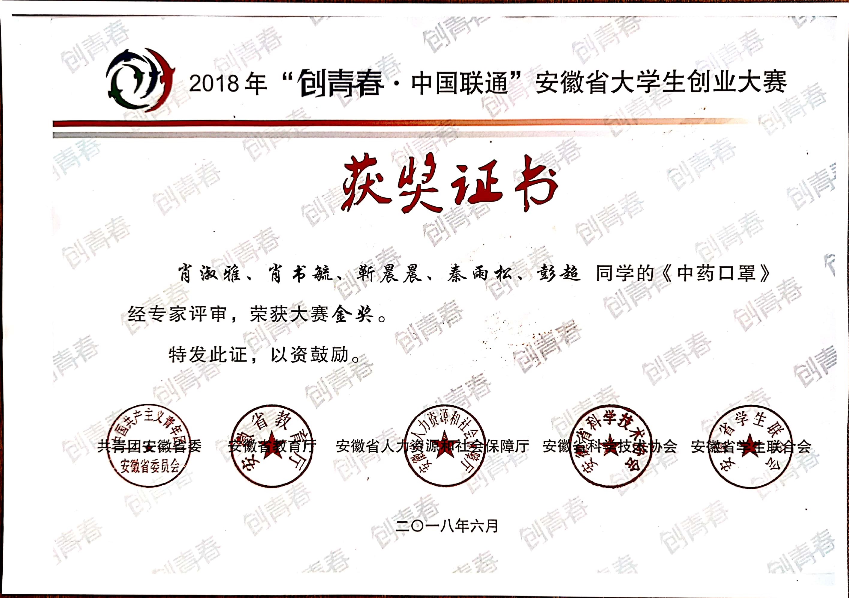 2018安徽省大学生创业大赛金奖