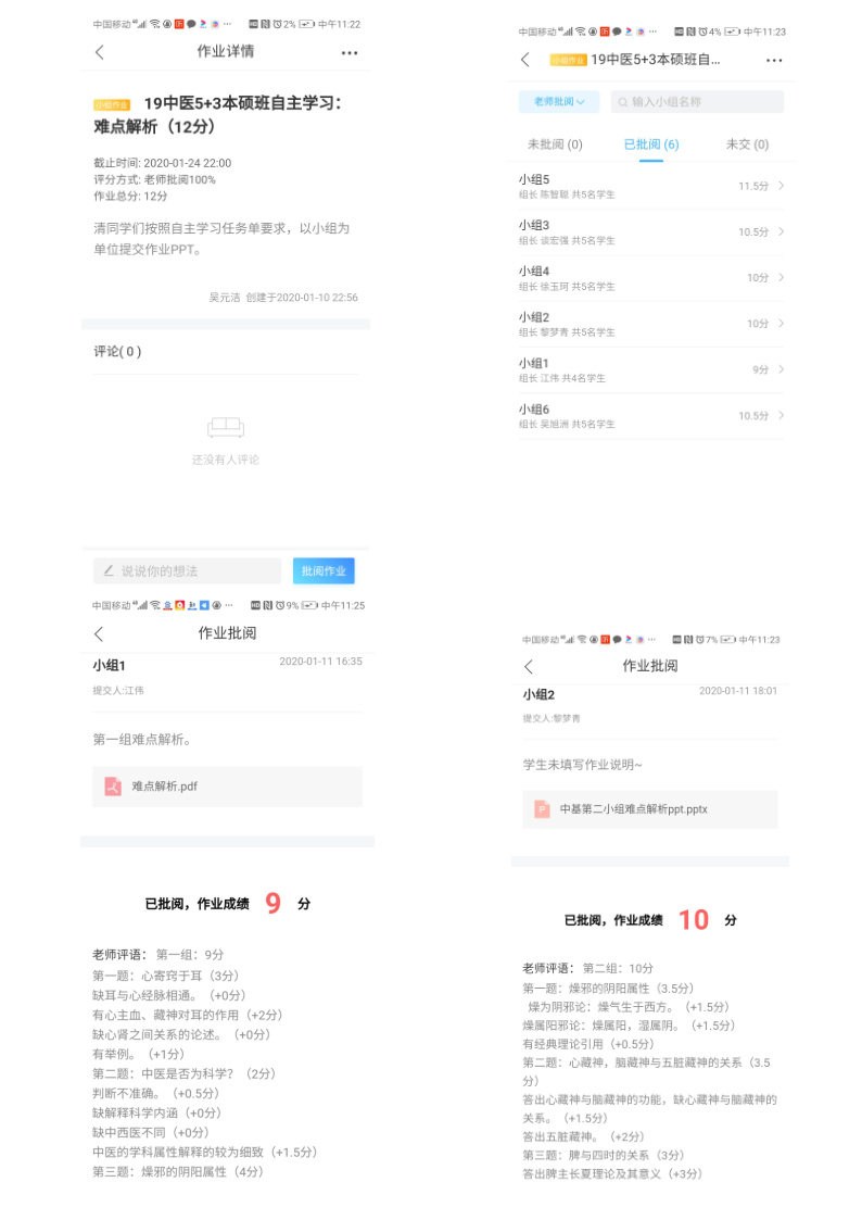 (4) 线上批阅“难点解析”小组作业