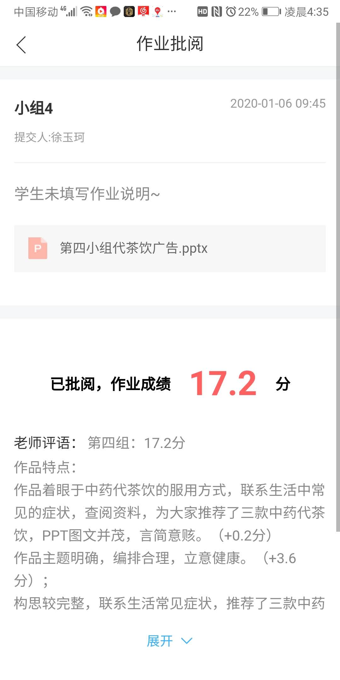 第四组学生主观题得分及教师评语