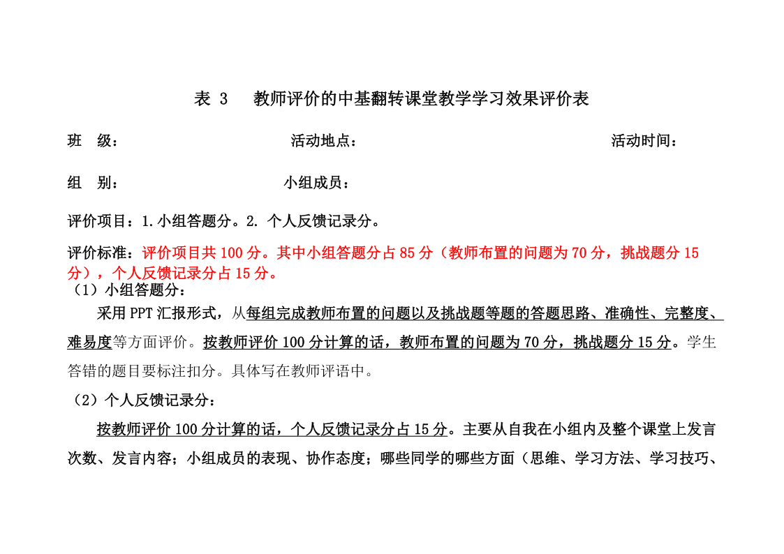 教师评价的中基翻转课堂教学学习效果评价表(3)