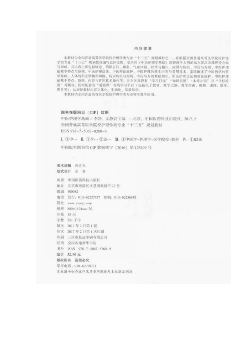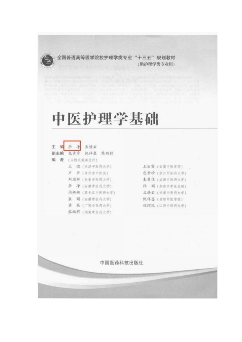 中医护理学基础-全国普通高等医学院校护理学类专业“十三五”规划教材-中国医药科技出版社(李净主编)