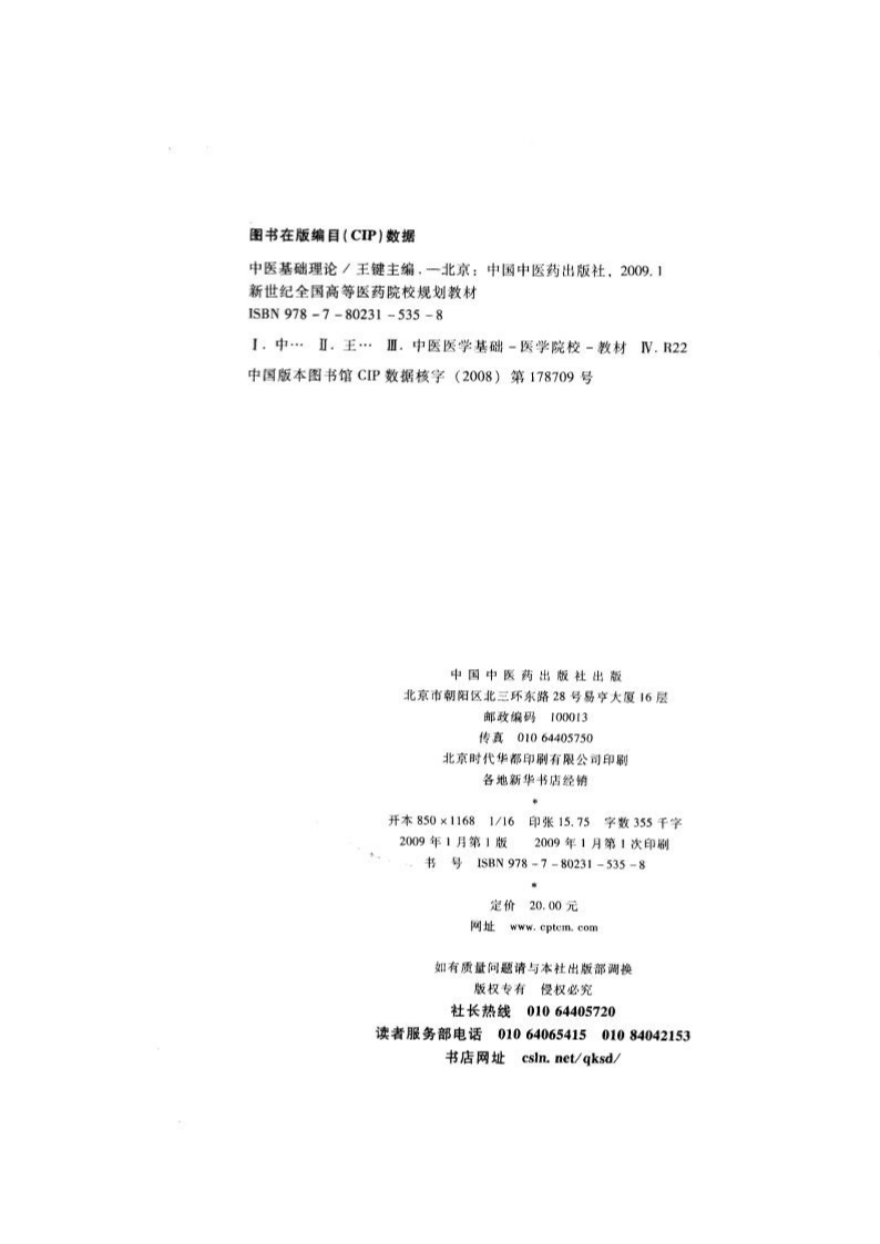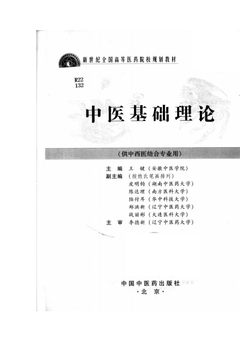 中医基础理论-新世纪全国高等医药院校规划教材-中国中医药出版社(李净参编)