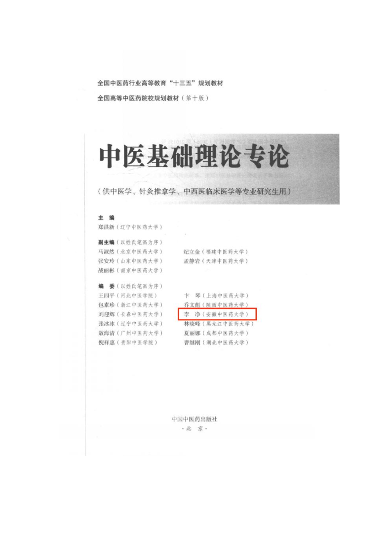 中医基础理论专论-全国中医药行业高等教育“十三五”规划教材、全国高等中医药院校规划教材-中国中医药出版社(李净参编)