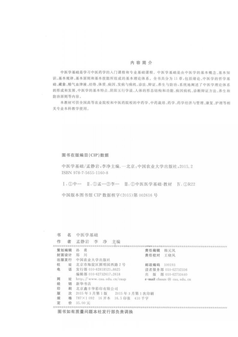 中医学基础-全国高等院校中药类专业“十二五”规划建设教材-中国农业大学出版社(李净主编)