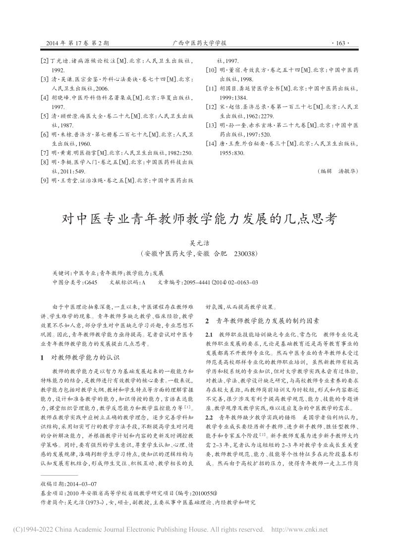 10.对中医专业青年教师教学能力发展的几点思考_吴元洁_1