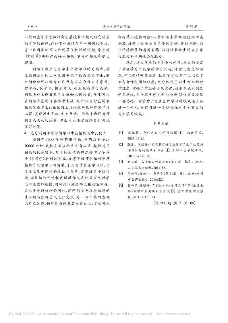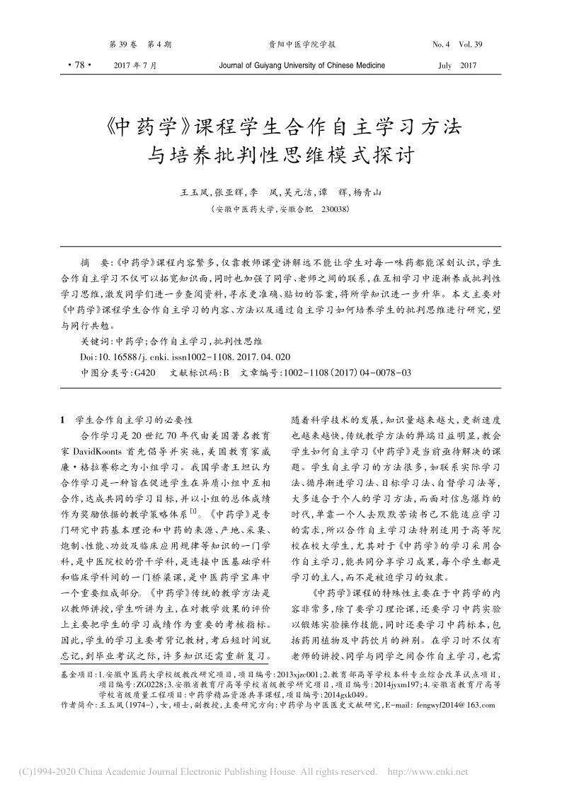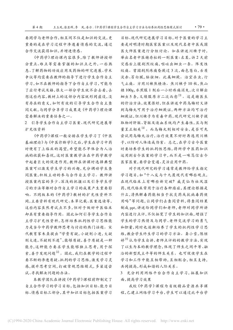 47.《中药学》课程学生合作自主...法与培养批判性思维模式探讨_王玉凤