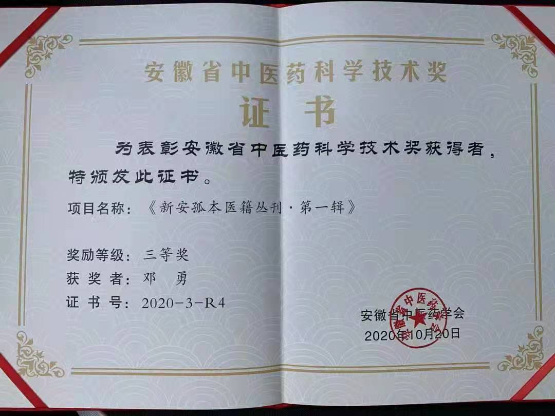 新安医学获奖情况