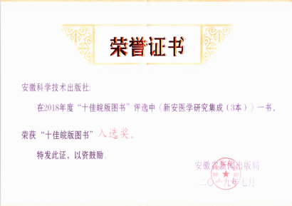 黄辉-《新安医学研究集成》“十佳皖版图书”入选奖
