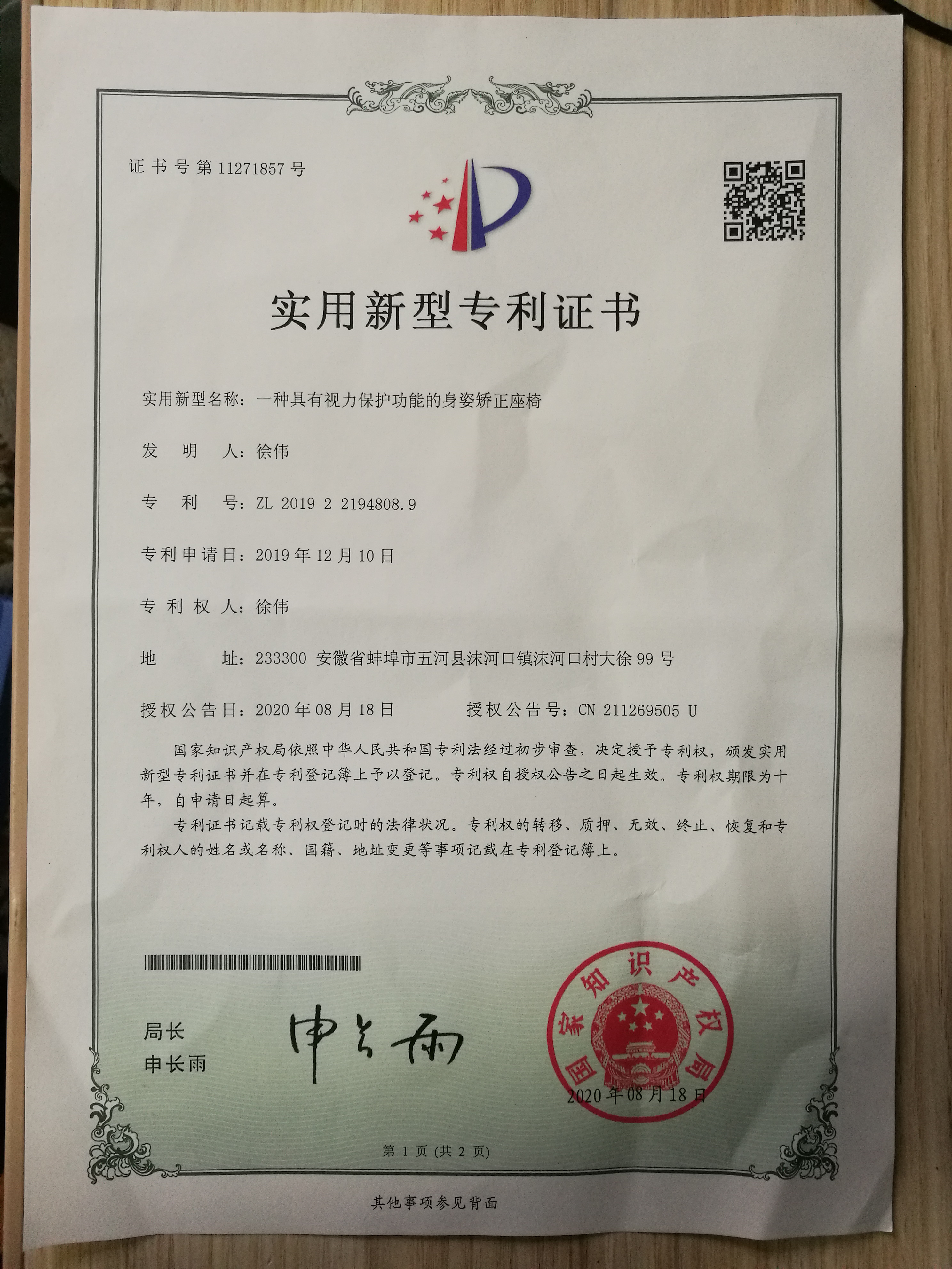 一种具有视力保护功能的身姿矫正座椅-实用创新新专利-徐伟