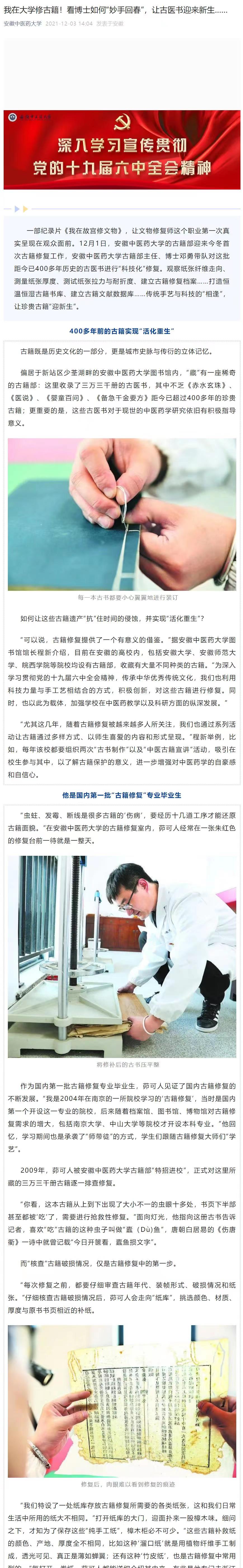 安徽中医药大学古籍部古籍修复展示