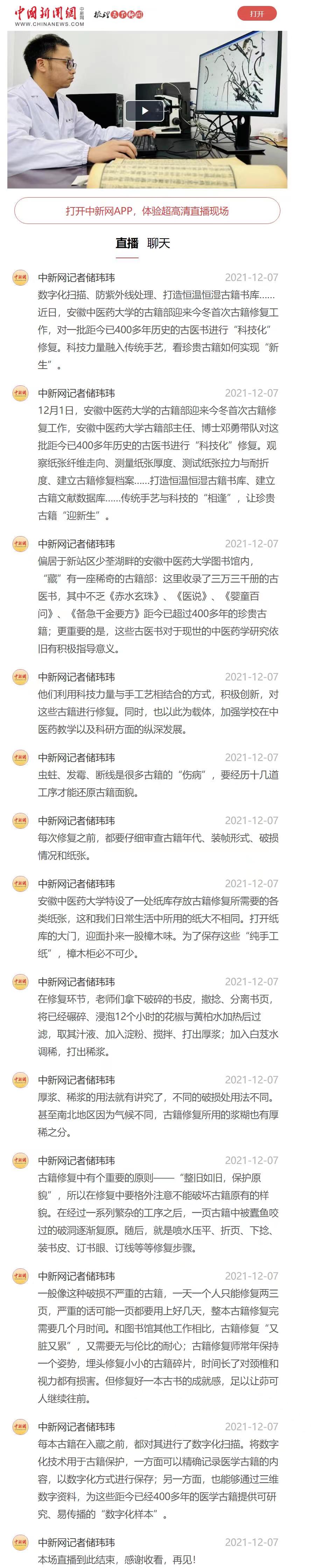 安徽中医药大学古籍部古籍修复直播报道