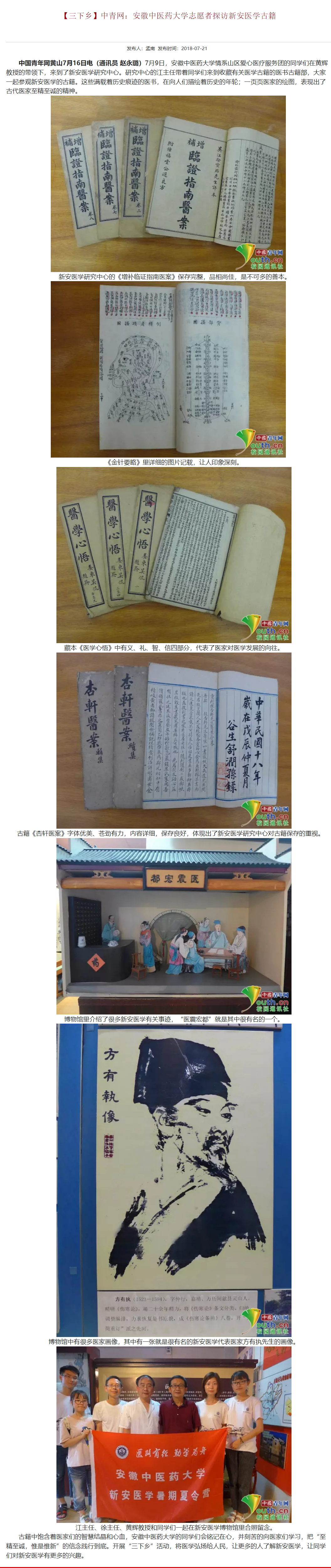 安徽中医药大学志愿者探访新安医学古籍-中国青年网报道