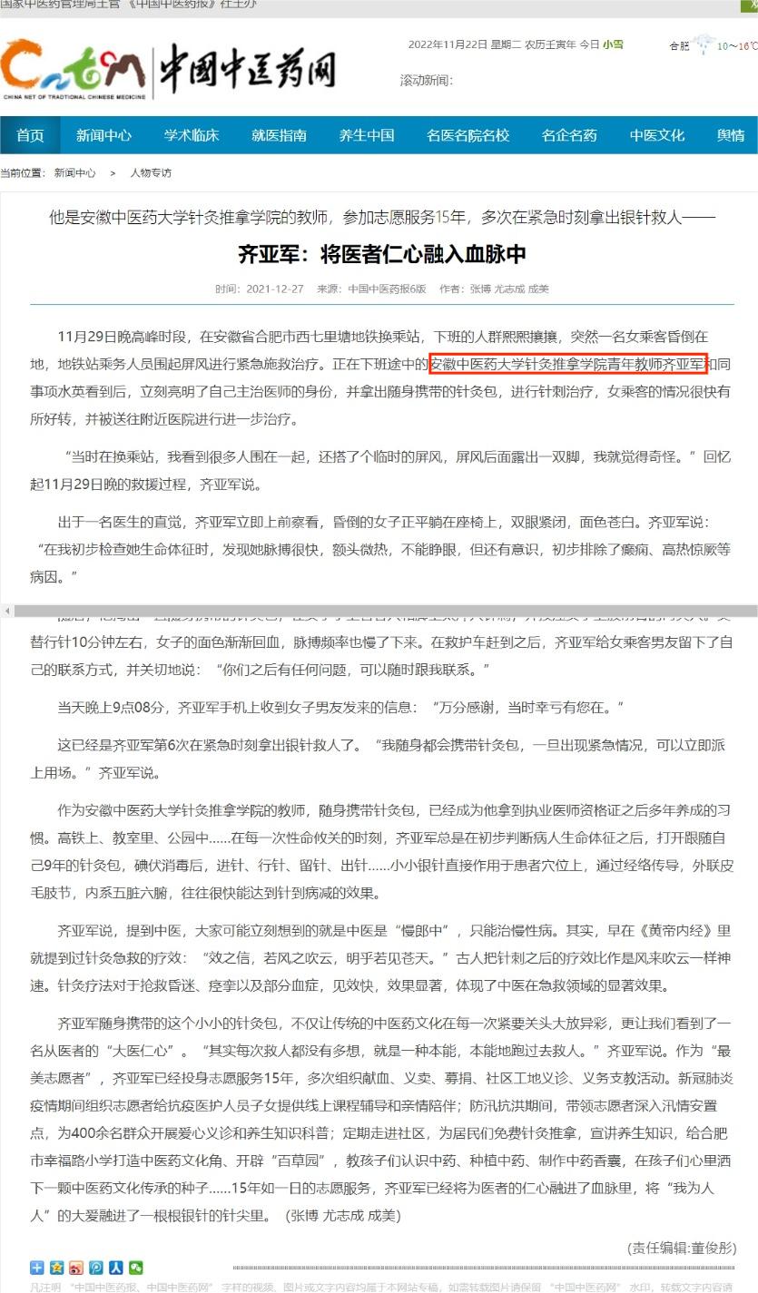 中国中医药网报道课程教师齐亚军 将医者仁心融入血脉中