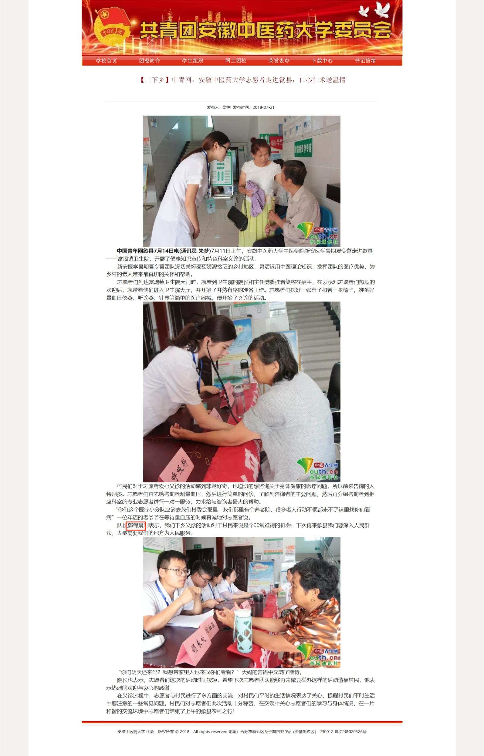 中国青年网报道我校志愿者走进歙县 仁心仁术送温情