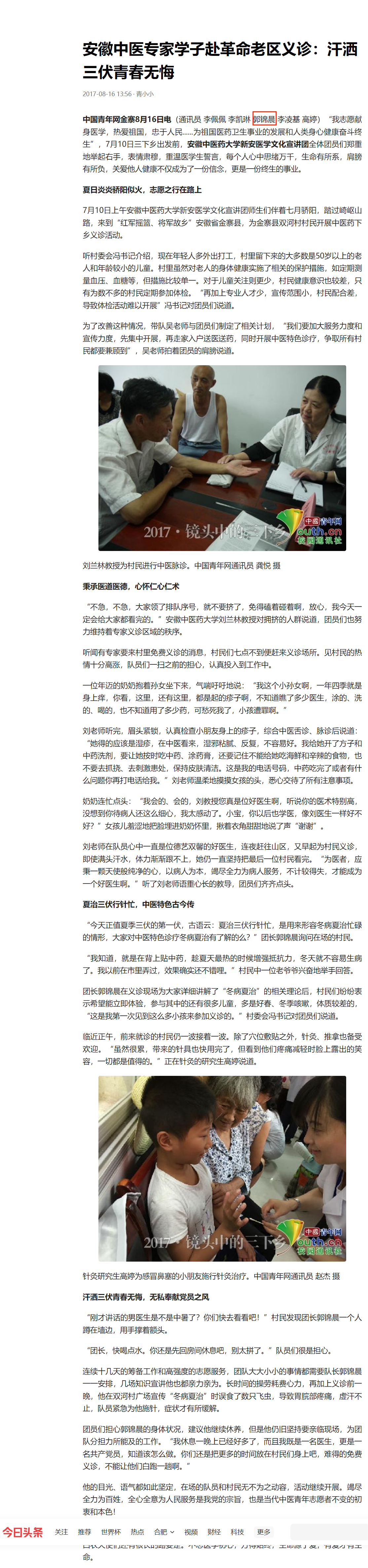 中国青年网报道课程师生赴革命老区义诊
