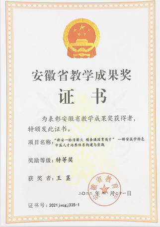 安徽省教学成果特等奖:“新安一脉传薪火 橘杏满园育英才” —新安医学特色中医人才培养体系构建与实践