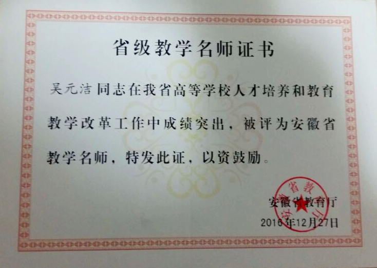 吴元洁获省级教学名师称号