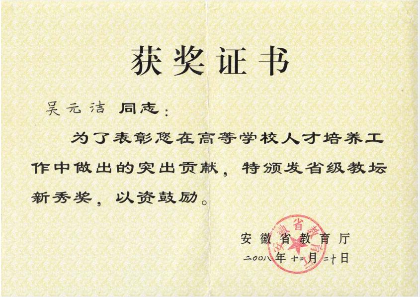 吴元洁获首届省级教坛新秀称号