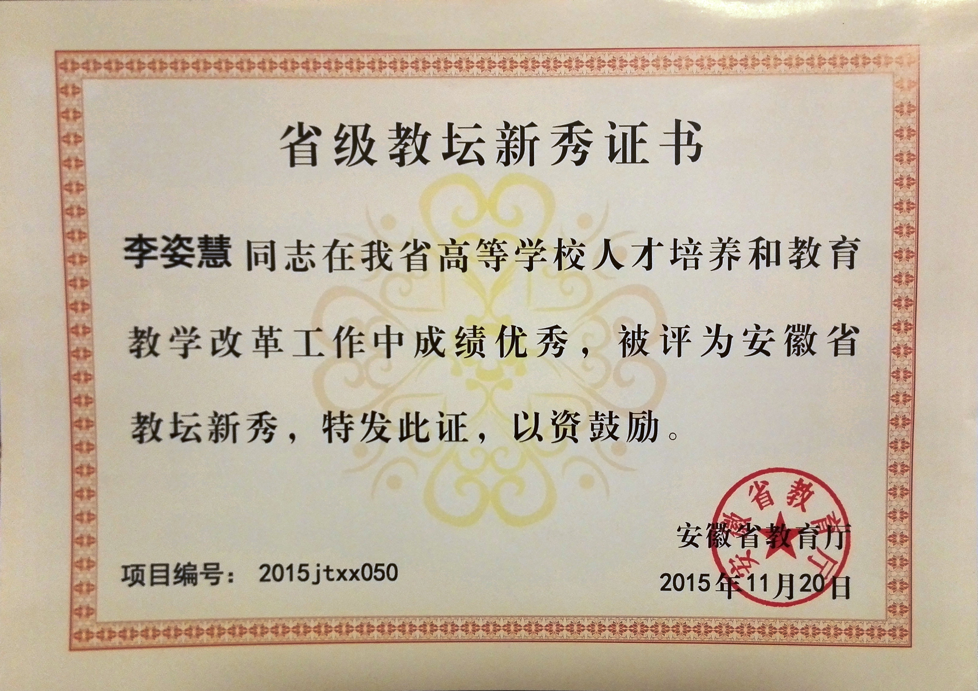 李姿慧获省级教坛新秀称号