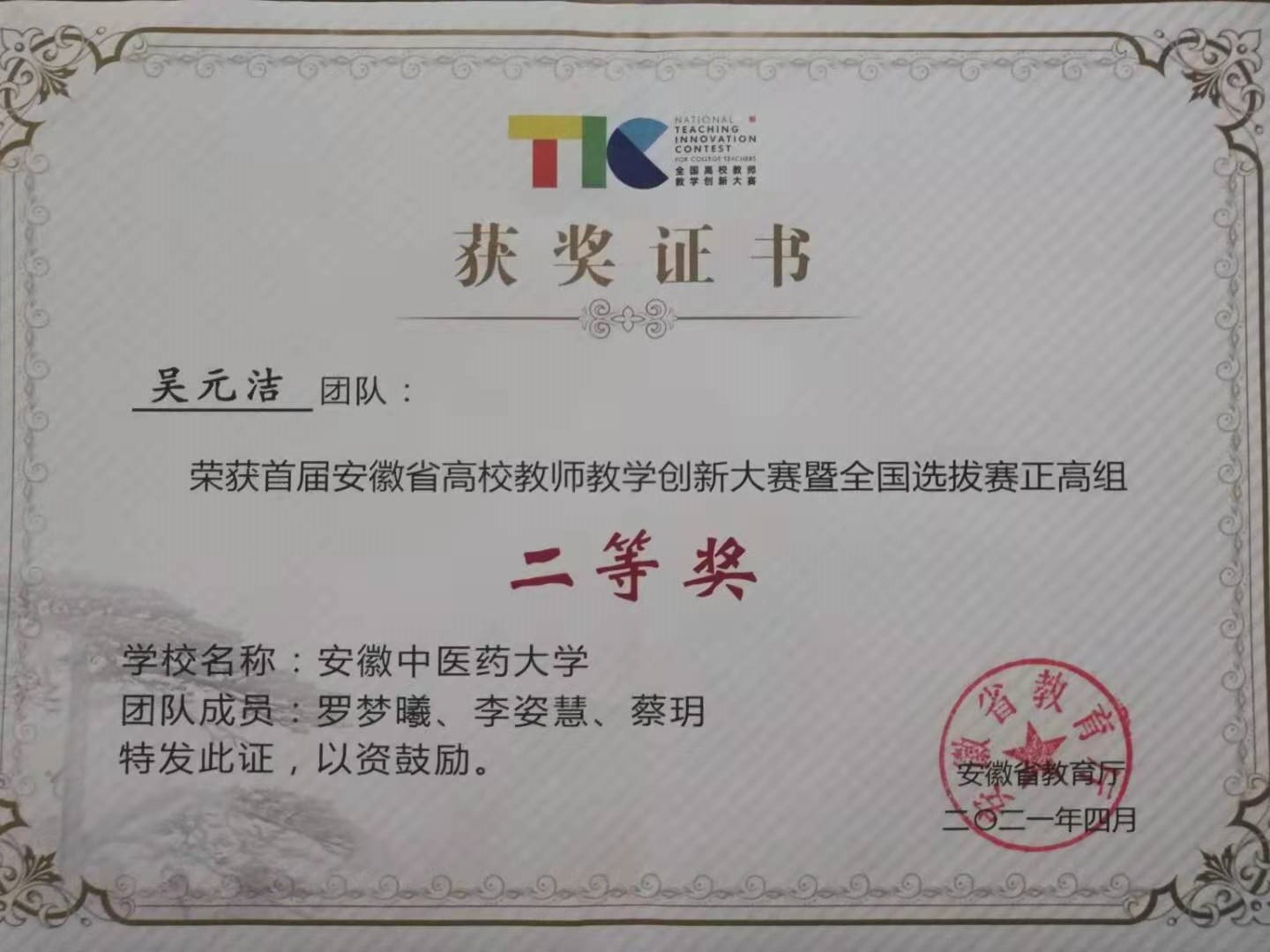 吴元洁、罗梦曦、李姿慧、蔡玥获首届安徽省高校教师创新比赛二等奖