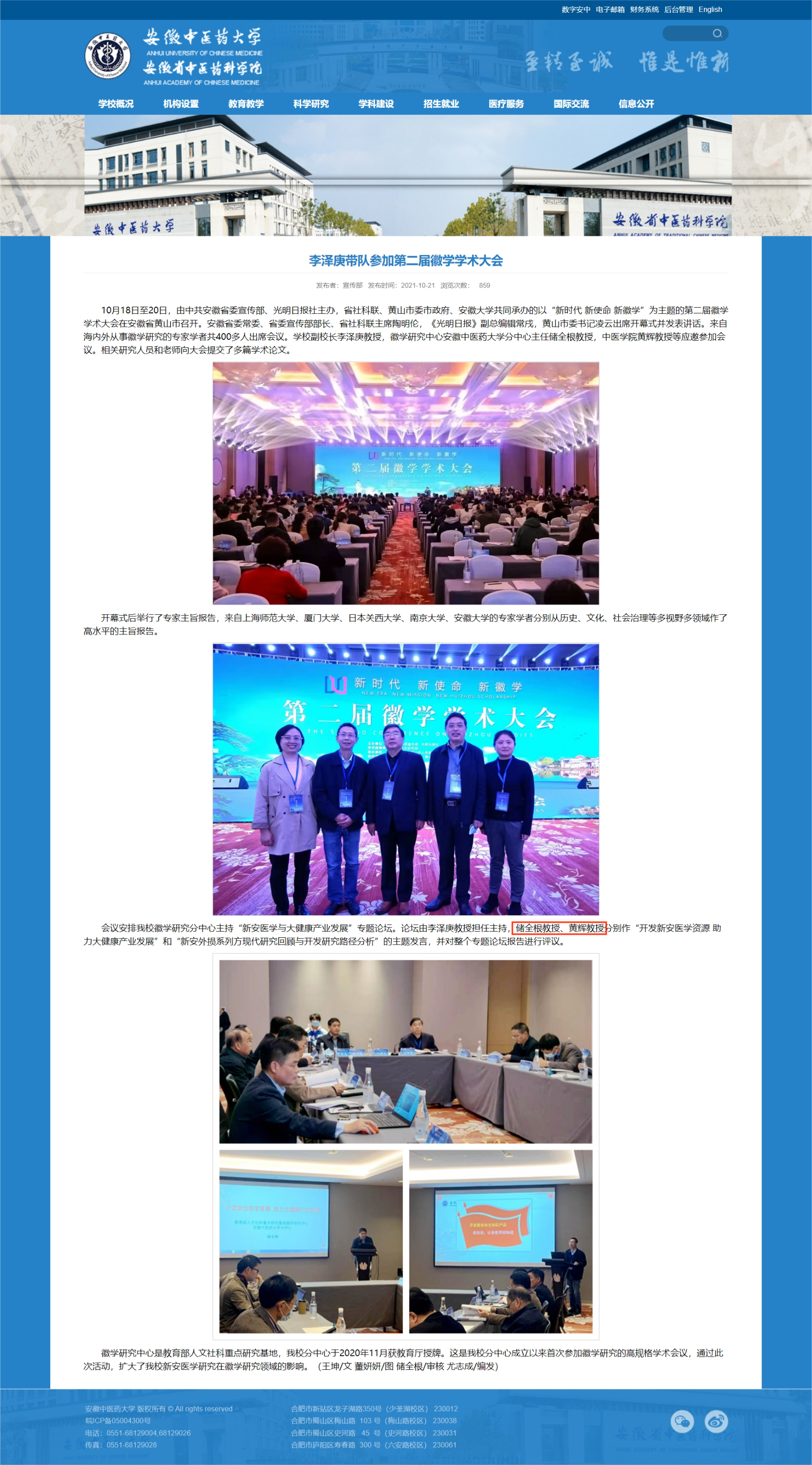 储全根、黄辉教授参加第二届徽学学术大会(安徽中医药大学官网)