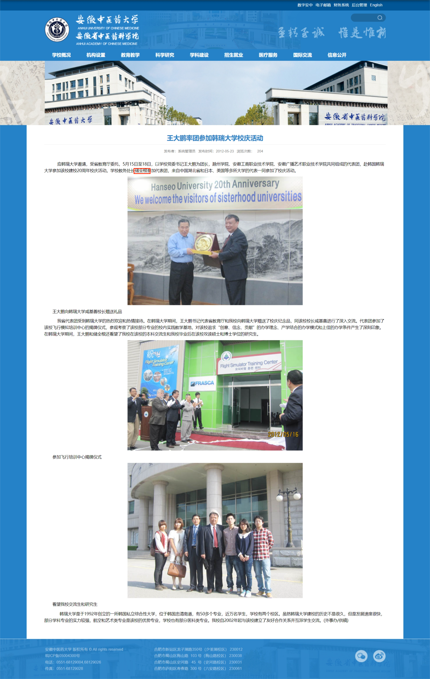 储全根教授参加韩瑞大学校庆活动(安徽中医药大学官网)