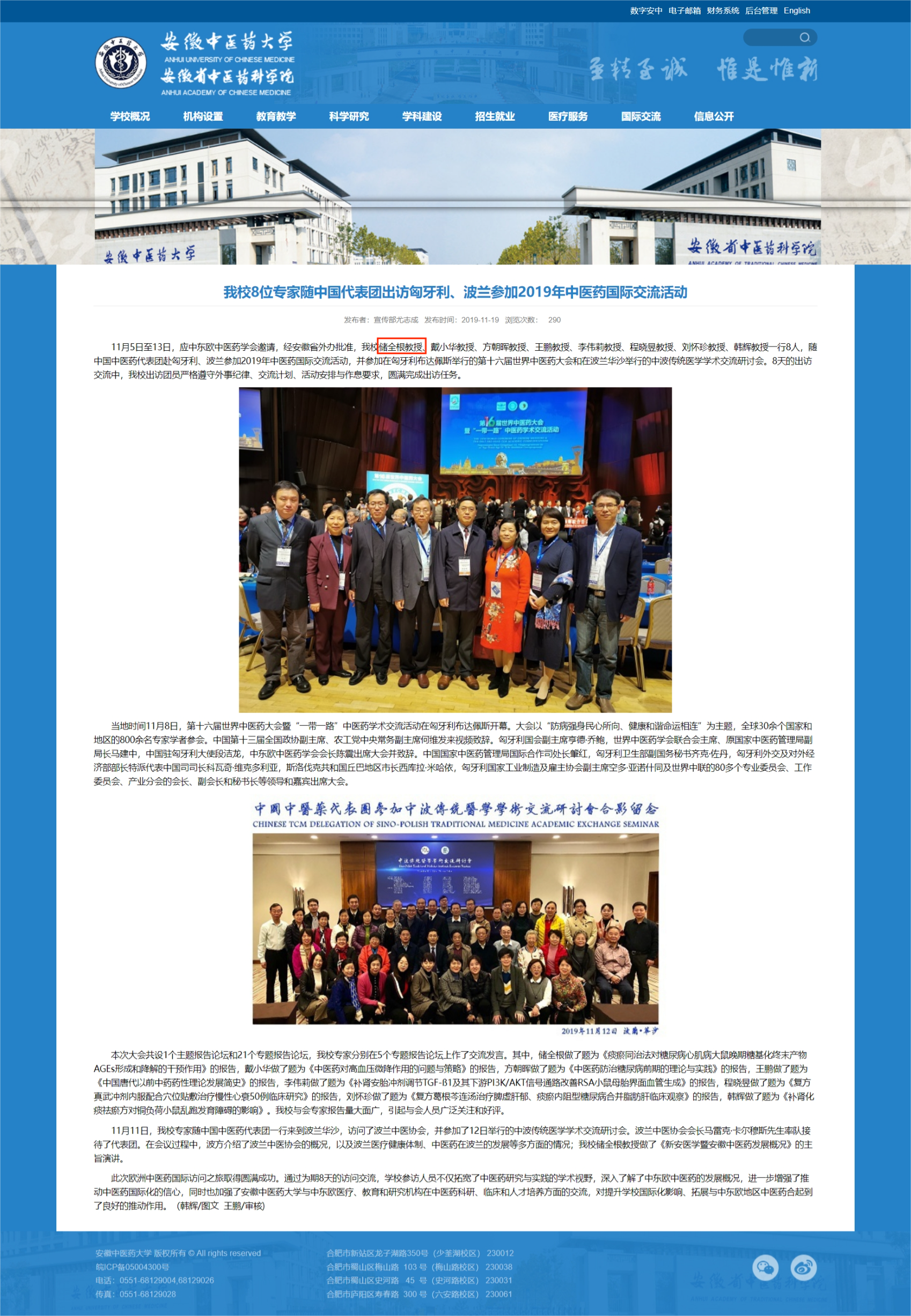 储全根教授出访匈牙利、波兰参加2019年中医药国际交流活动(安徽中医药大学官网)