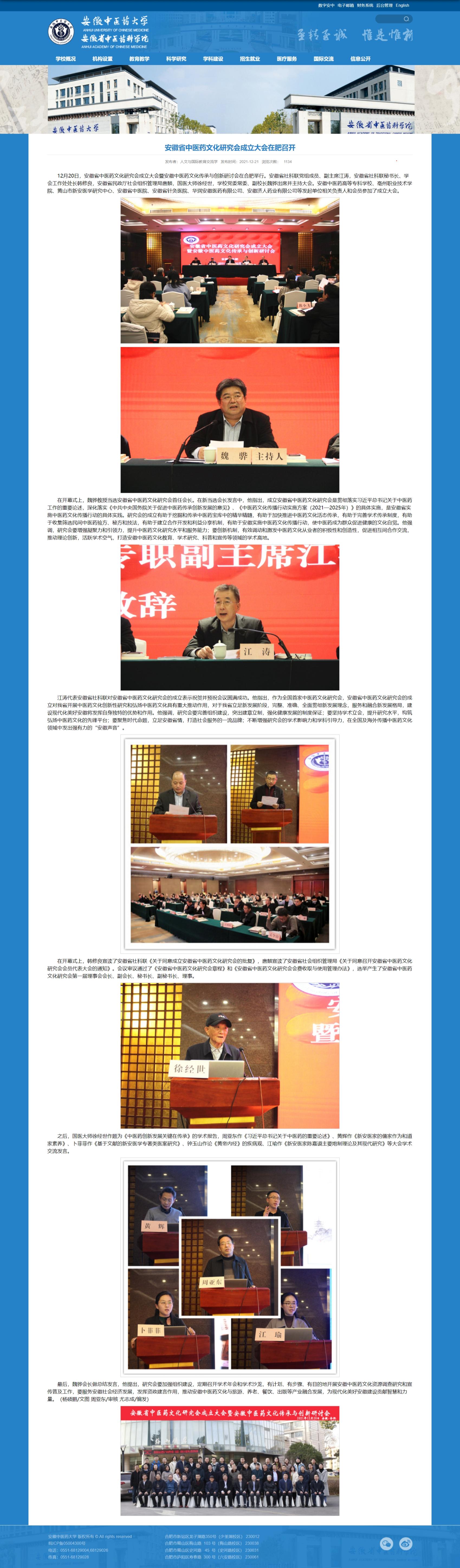黄辉教授、卜菲菲老师参加安徽省中医药文化研究会成立大会并做大会学术交流发言(安徽中医药大学官网)