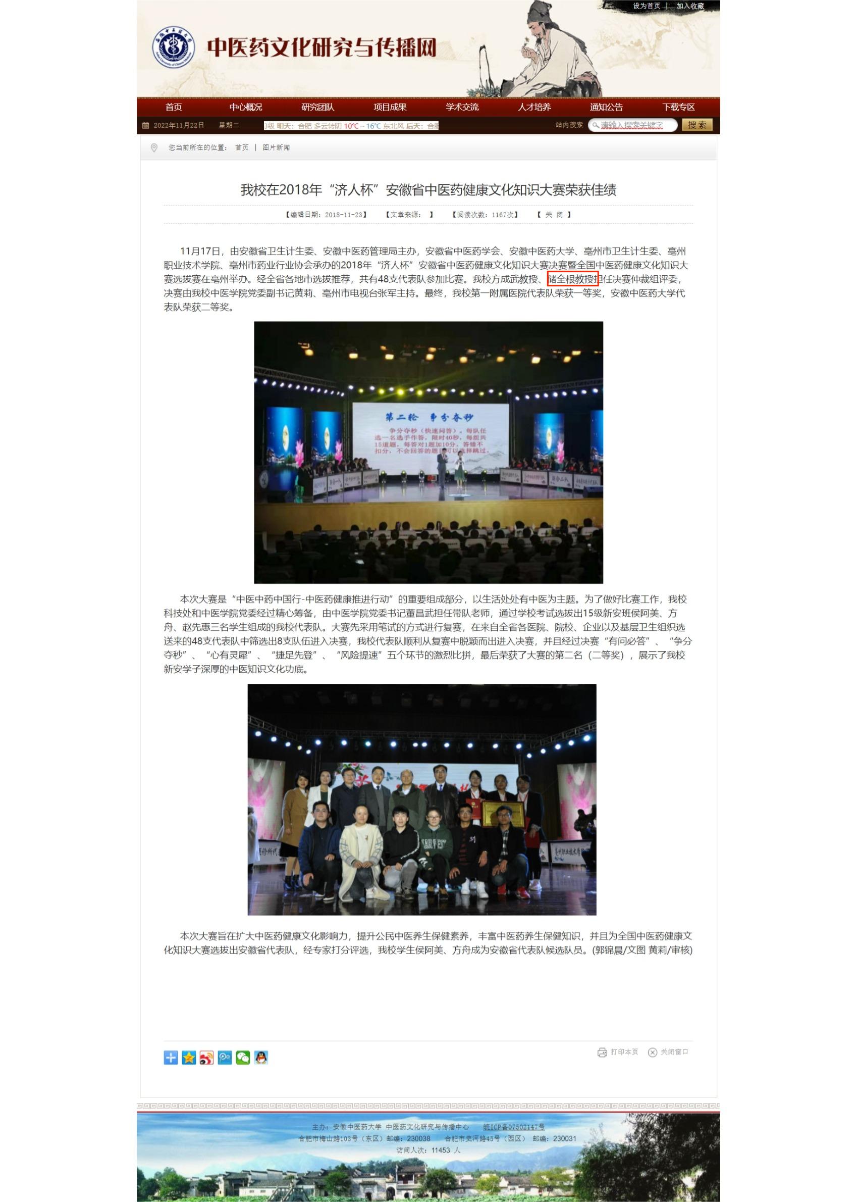 课程教师担任安徽省中医药健康文化知识大赛评委