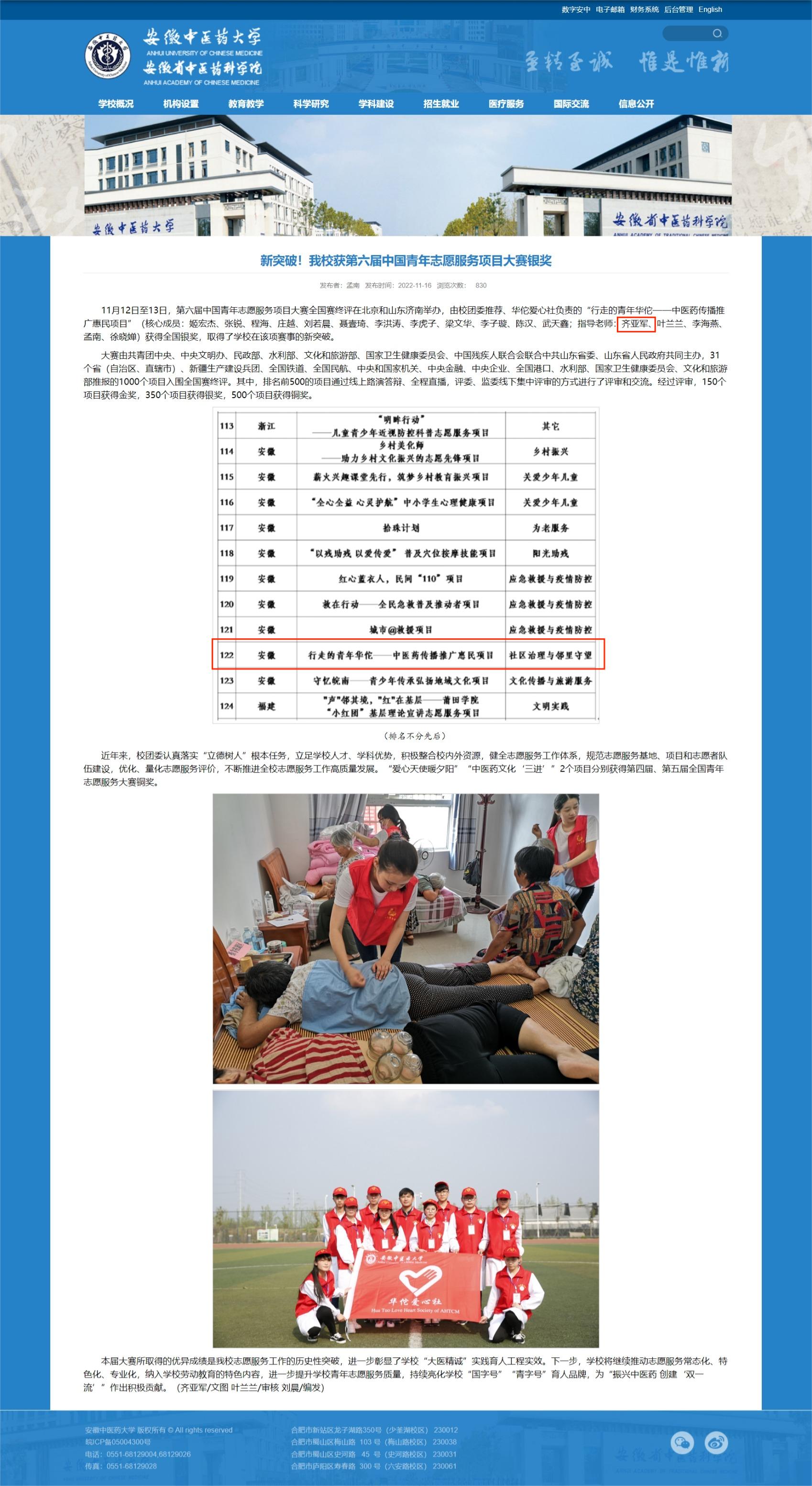 课程教师齐亚军指导学生的社会实践项目获第六届中国青年志愿服务项目大赛银奖