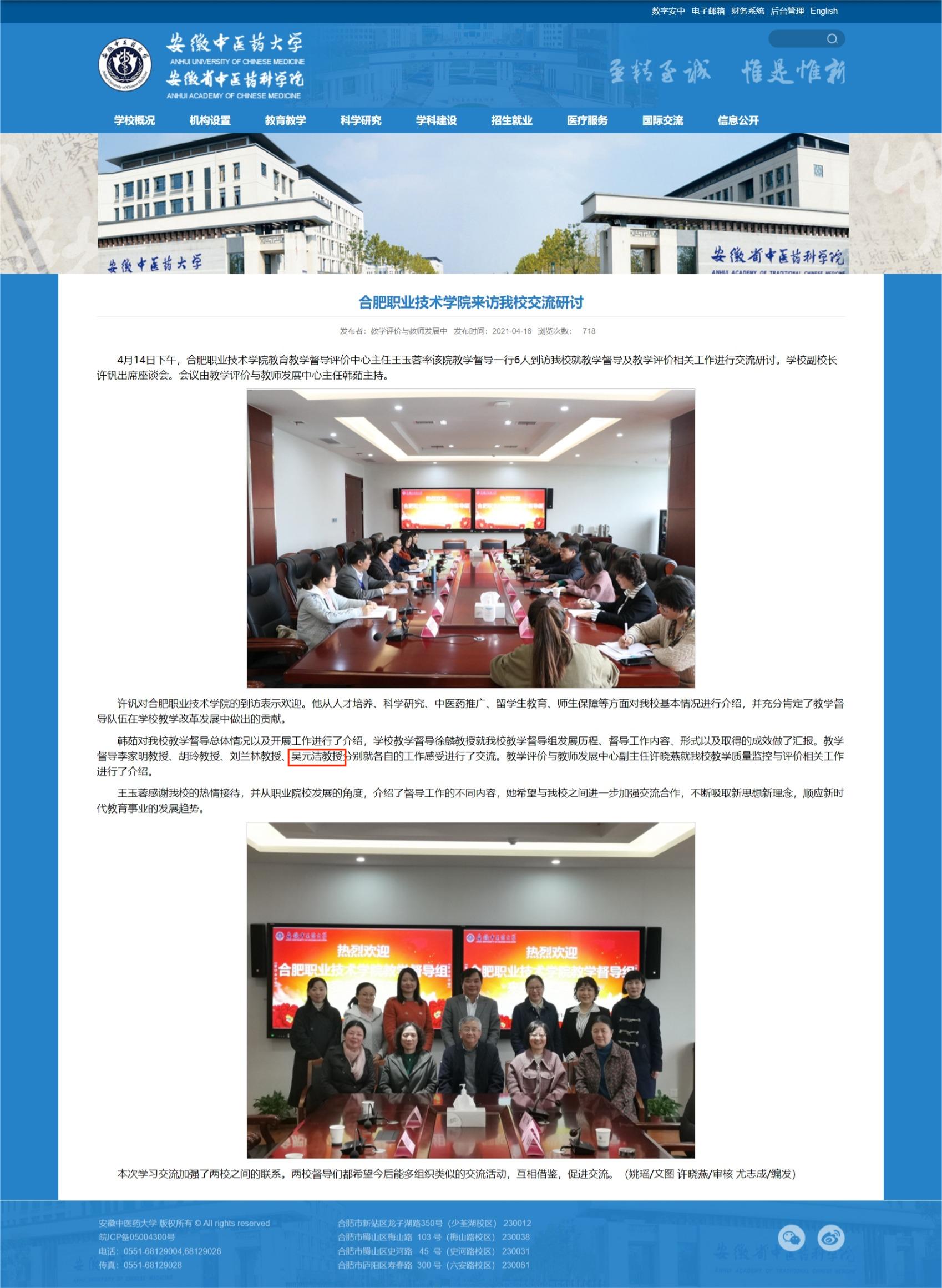 课程教师吴元洁作为学校教学督导与合肥职业技术学院交流研讨