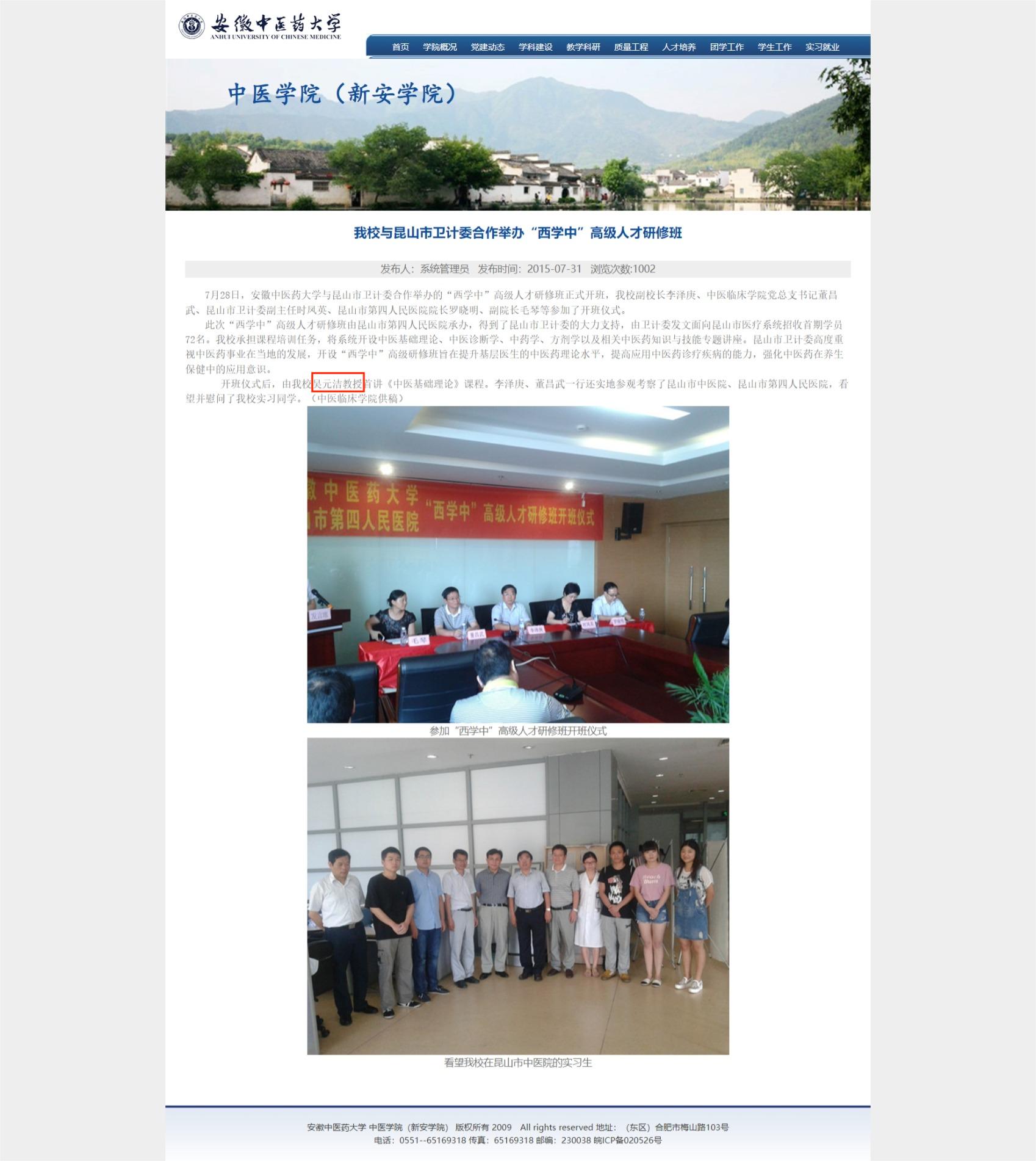 课程教师在昆山进行“西学中”高级人才研修班授课