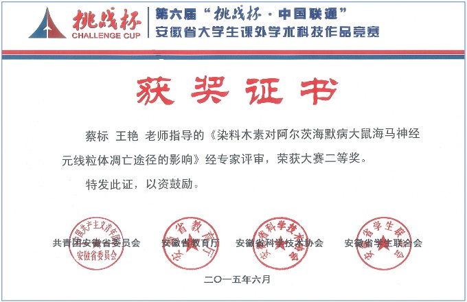 安徽省大学生“挑战杯”课外学术科技作品竞赛二等奖