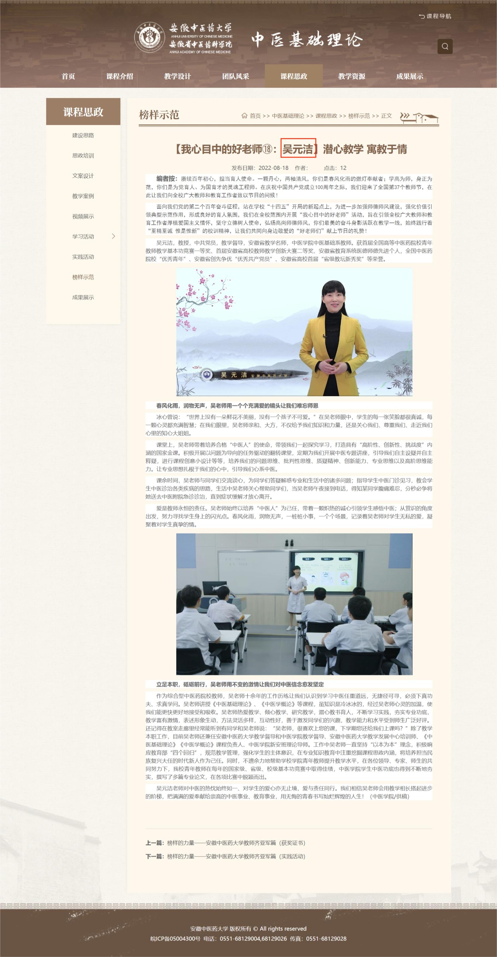 学校官网报道我心目中的好老师:吴元洁潜心教学 寓教于情